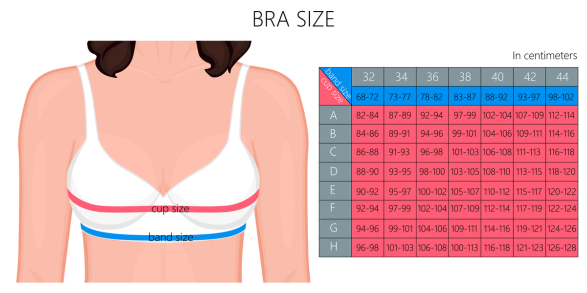Round both measurements to the nearest whole number. Calculate your cup size by subtracting your band size (in step 1) from your cup size (in step 2). Every inch difference is another cup size.